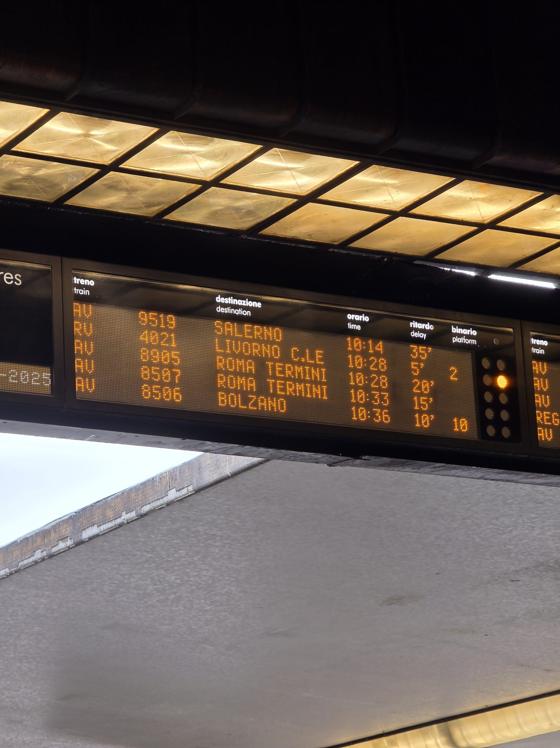 自分たちが乗る予定の列車が遅れており何分遅れかという情報は掲示板に表示されていたのですが、2、3回その時間も変更されホームの位置も突然表示されるので